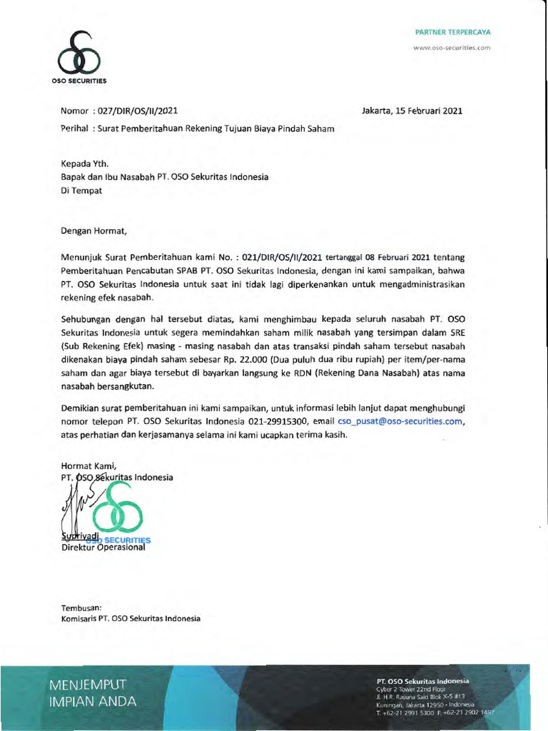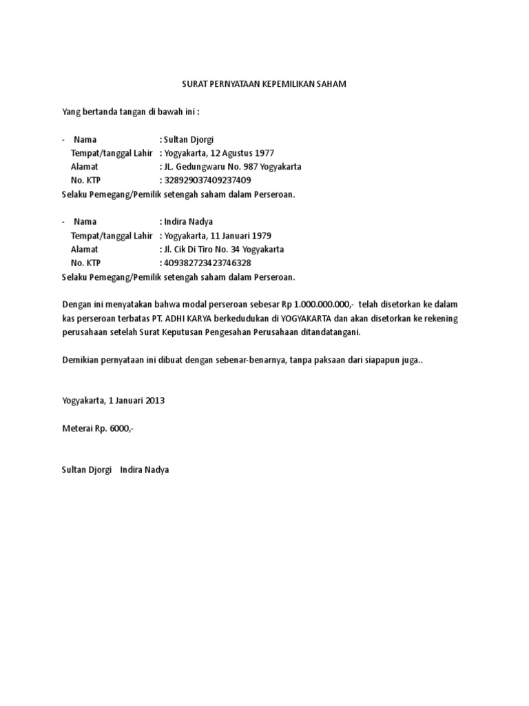 Contoh Surat Pindah Saham